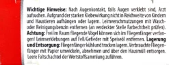 Fliegen stören nicht nur durch monotones Summen, sondern sie hinterlassen auch regelmäßig dicke Flecken auf der gerade neu geputzten Scheibe. Mit dem Aeroxon Fliegenfänger endet der nervige Rundumflug abrupt. Die spiralförmige Leimfalle wirkt bis zu 8 Wochen und ist für Räumlichkeiten von 8 – 10 qm geeignet. Auch Obstfliegen werden angelockt! Die Leimfalle hält eine ganze Saison! Hast du neugierige Haustiere, solltest du die Klebefallen außer Reichweite aufhängen, damit dein Tier nach Kontakt nicht verklebt aus der Wäsche guckt!
