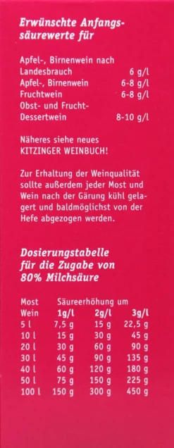 Wein trinken ist toll. Wein selber herstellen ist ein Erlebnis. Und damit dieser zu einem unvergesslichen Genuss wird, füge Kitzinger Milchsäure vor der Gärung hinzu. Sie sorgt für eine saubere Gärung und erhöht die Haltbarkeit des Weins. Auch der Geschmack kommt dabei auf seine Kosten.